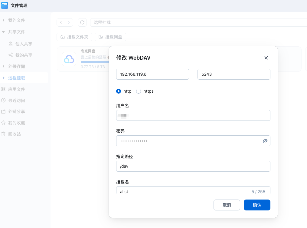 将openlist服务 webdav形式挂载到飞牛(如果你只有夸克云盘这一步可以忽略)