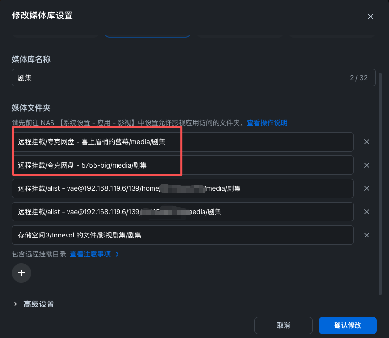 夸克的资源,不要使用openlist中的挂载路径,请使用飞牛官方的夸克网盘